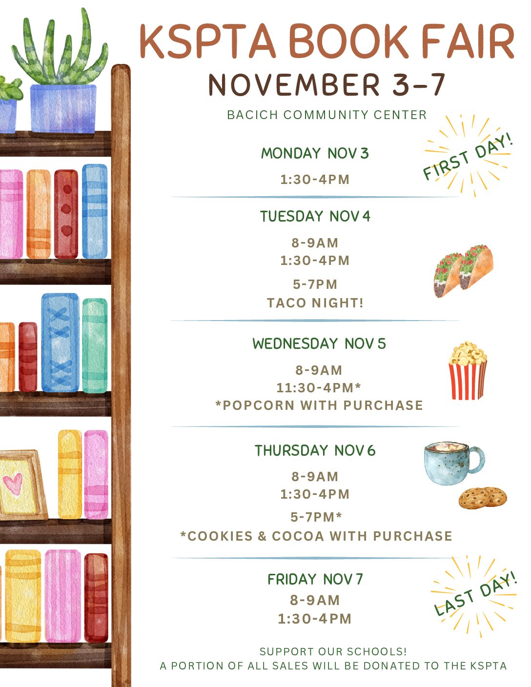Get ready for the 2025 Book Fair! This beloved event benefits the KSPTA and encourages our students to fall in...