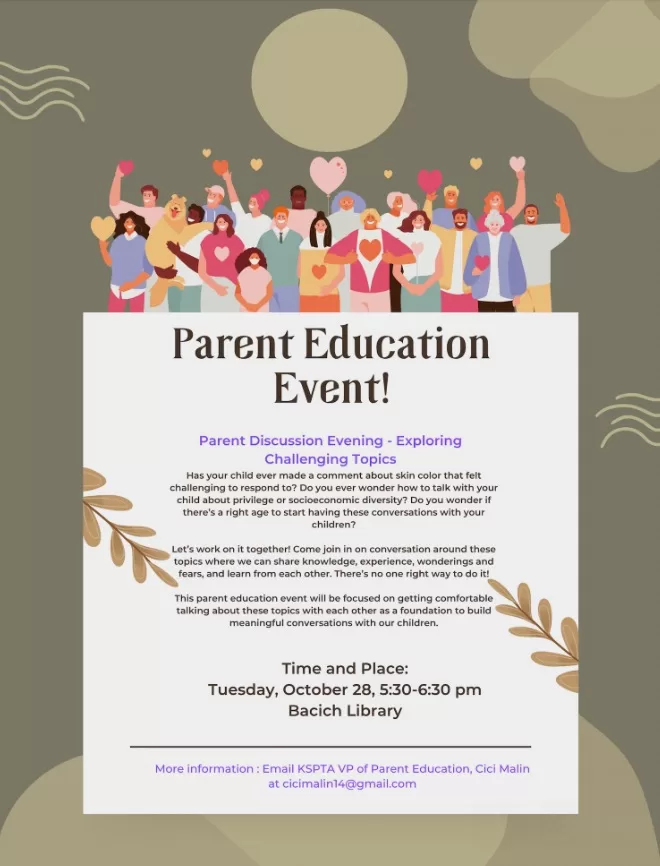 KSPTA General Association Meeting + Kent Principal Chat with Mr. Althouse and kidsIRL Friday, Oct. 17, 8:45 a.m., Kent Library.